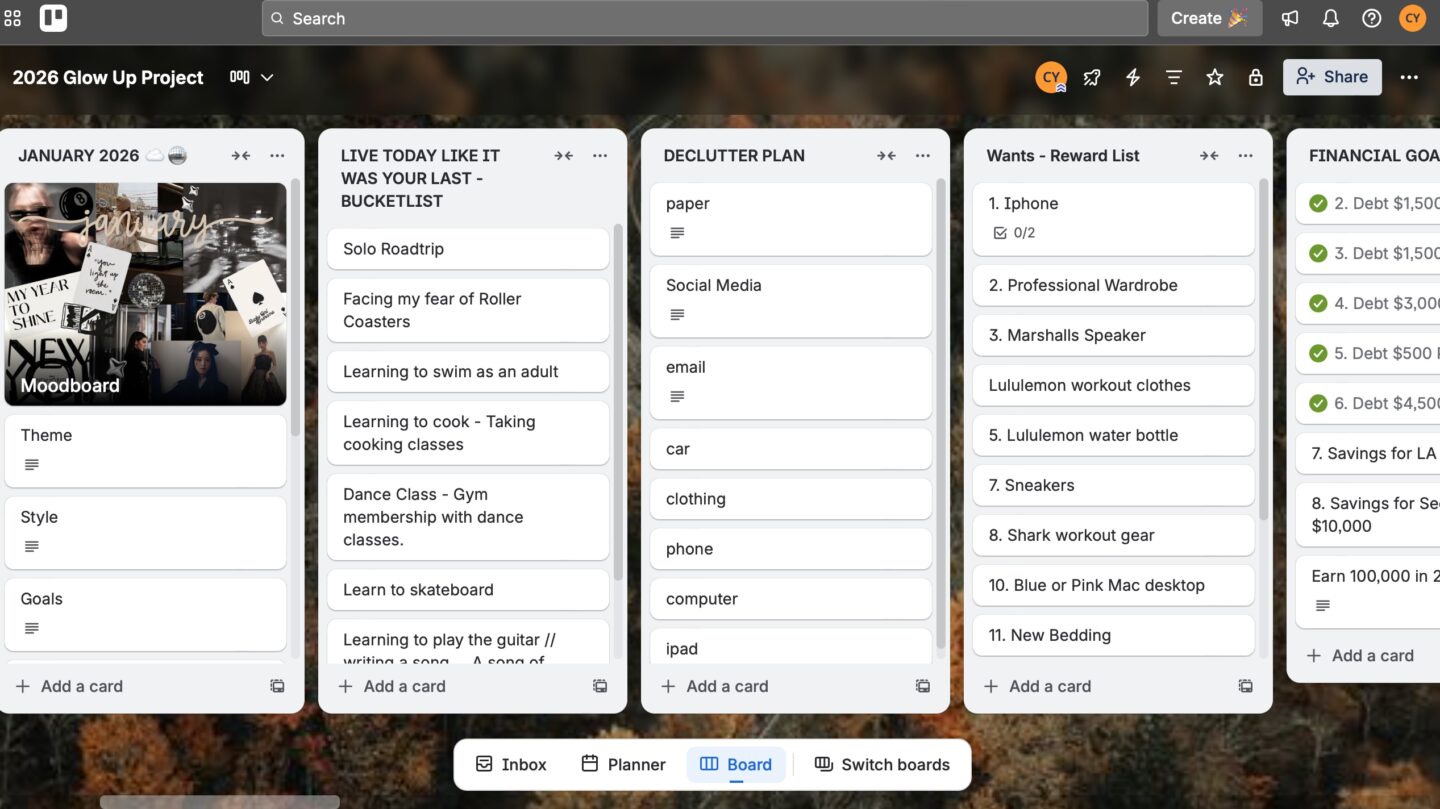 I do love to have a digital online palace to organize my life and that place for me is Trello. It’s similar to Notion but a little more user friendly, in my opinion, while I love the options to customize. I love Trello more, it has just been easier for me to use. I love creating Quarterly pages and attaching all of my digital files to it to make it easier to manage things online.
